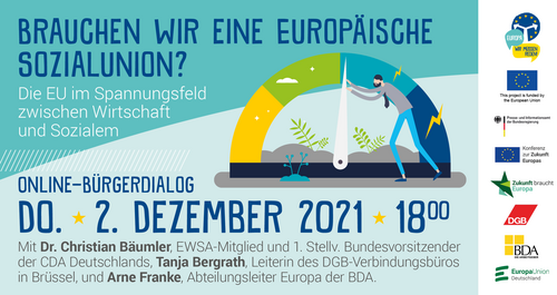 Online-Bürgerdialog: „Brauchen wir eine Europäische Sozialunion? Die EU im Spannungsfeld zwischen Wirtschaft und Sozialem“ am 02.12.2021
