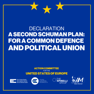 Am 9. Mai 2025 forderte das neu gegründete Monnet-Aktionskomitee für die Vereinigten Staaten von Europa einen Zweiten Schuman-Plan, der den Weg für eine gemeinsame Verteidigung und Sicherheit sowie eine europäische Föderation ebnen soll. Das Präsidium der überparteilichen Europa-Union Deutschland begrüßt und unterstützt die Erklärung, die am Europatag aus Anlass des 80. Jahrestages des Zweiten Weltkriegs und des 75. Jubiläums der Schuman-Erklärung veröffentlicht wurde. » weiterlesen
