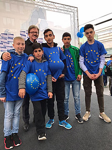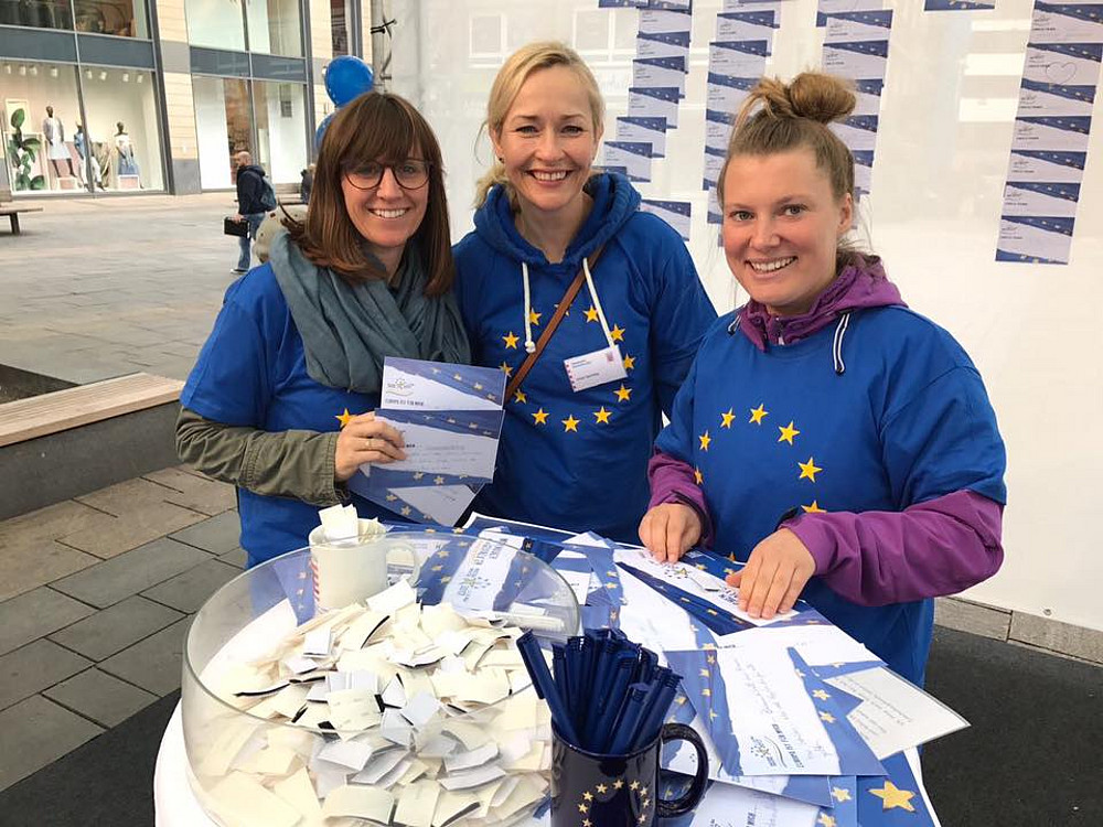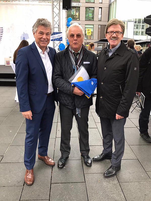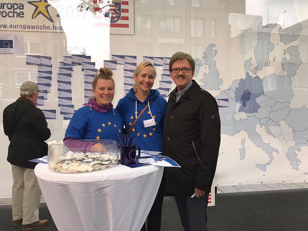 Mitten in der Fußgängerzone von Wiesbaden fällt der Startschuss für eine Vielzahl von Veranstaltungen vom 5. bis 14. Mai, an denen Zehntausende teilnehmen werden. Wir stehen Rede und Antwort, die Europaministerin Lucia Puttrich, eine Vertreterin der Partnerregion Aquitaine und ich als MdEP und Landesvorsitzender der Europa Union Hessen. Wir sind voller Hoffnung für einen Erfolg eines Pro-Europäers in Frankreich. Bonne Chance, Emmanuel Macron!