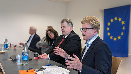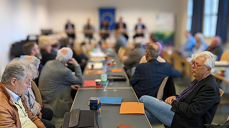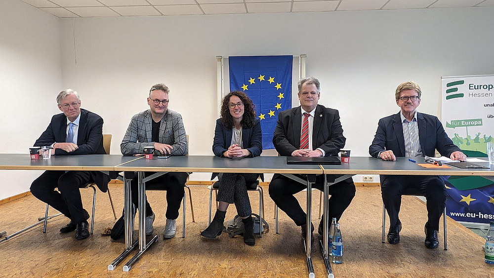 Im öffentlichen Teil der Landesversammlung diskutierte ein hochkarätiges Panel die Herausforderungen und Perspektiven für Europa. Die Landtagsabgeordneten Dr. Ralf-Norbert Bartelt (CDU), Oliver Stirböck (FDP), Angela Dorn (Bündnis '90/ Die Grünen) und Stephan Grüger (SPD) brachten ihre vielfältigen Perspektiven ein und inspirierten die Anwesenden.