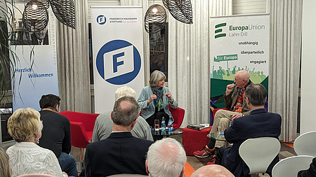 Im Jubiläumsjahr - 75 Jahre Europarat - diskutierten wir mit der langjährigen Europa-Politikerin Anne Brasseur aus Luxemburg und dem ehemaligen Vize-Präsidenten des Deutschen Bundestages und Ehrenvorsitzenden der Freien Demokraten, Dr. Hermann Otto Solms, über die Werte der EU.