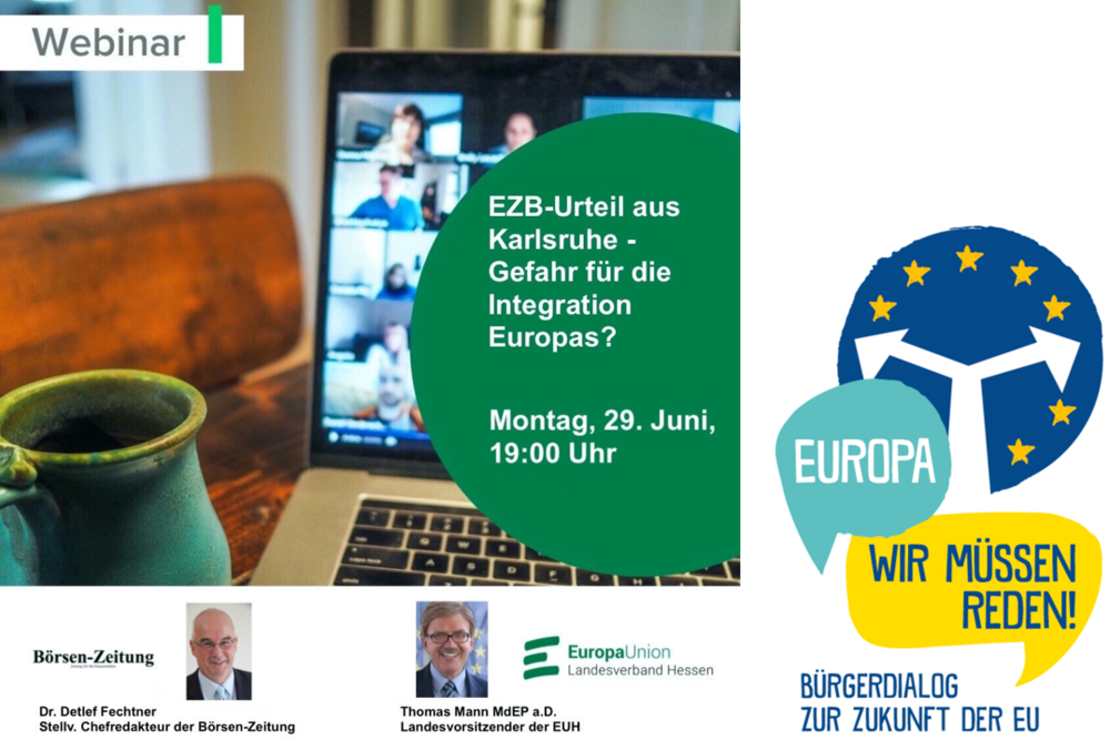 Wir laden Sie am 29. Juni um 19 Uhr herzlich ein zu unserem Webinar "EZB-Urteil aus Karlsruhe - Gefahr für die Integration Europas?".