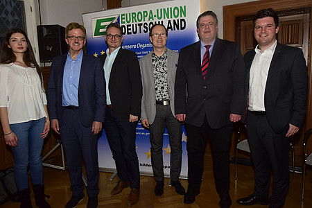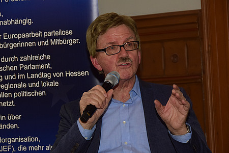 Für den Lahn-Dill-Kreis überbrachte der Ehrenamtliche Kreisbeigeordnete Wolfram Dette (FDP) Grüße. Dabei erinnerte er an den vor 70 Jahren entwickelten Schumann-Plan, der bis heute für ein friedliches Miteinander gesorgt habe. Rund 60 Jahre sei die Europäische Union von einem Erfolg zum nächsten geeilt. „Nun ist Europa in eine Situation gekommen, wo schwieriger wird, von Visionen zu sprechen“, so Dette. Heute müsse man einen Ausgleich schaffen zwischen gemeinsamen und nationalen Werten. Polen habe eine Regierung, die die Unabhängigkeit der Justiz in Frage stellt und damit europäische Werte angreift. In Ungarn werde die Meinungsfreiheit in den Medien bedroht. Er wünsche sich, dass die Europa-Union in die aktuellen Diskussionen wichtige Impulse einbringen könne.