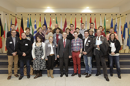 Dreißig vornehmlich junge Teilnehmer aus der Europa-Union Lahn-Dill sowie aus den Reihen der Jungen Union (JU) Lahn-Dill sowie den Jungsozialisten (Jusos) Lahn-Dill waren der Einladung gefolgt, um sich sechs Monate vor den Wahlen zum Europäischen Parlament im Mai 2014 in der „Hauptstadt“ Europas vor Ort einen Eindruck über die Arbeitsabläufe und Prozesse europäischer Einrichtungen zu machen. Der 24-jährige Organisator Sven Ringsdorf (Solms) hatte ein umfangreiches Bildungsprogramm zusammengestellt, das den Teilnehmern vielfältige Informationen lieferte. Nach der Abfahrt um 5 Uhr in Wetzlar stand ein Besuch im Europäischen Parlament mit Führung an. Neben den Organen und der Aufbau der EU wurde vor allem die Arbeitsweise des Parlaments erläutert. Im Abgeordnetengespräch mit Europaabgeordnetem Michael Gahler wurden v.a. die aktuellen Herausforderungen der EU diskutiert, darunter der Umgang mit den starken Flüchtlingsströmen, die Staatsschuldenkrise, die Haushaltssanierung in krisengeschüttelten Euro-Mitgliedsstaaten, der demographische Wandel sowie die Energiewende. Gahler verdeutlichte, dass künftig kein Nationalstaat der EU international länger besondere Einflussmöglichkeiten haben werde. Nur gemeinsam und mit vereinten Kräften sei es möglich, sich zentralen Herausforderungen der Zukunft Europas wie des Strukturwandel in Krisenländern und der Anpassung von Lebens- und Wirtschaftsstandards zu widmen, so der langjährige Fachmann. Der Wunsch der jungen Teilnehmer war es, sich verstärkt dem Thema „Generationsgerechtigkeit“ anzunehmen, damit Europa auch noch in 20, 30 und 50 Jahren lebenswert ist. Weiter ging die Studienfahrt in der neuen Hessischen Landesvertretung, wo Andreas Kuckro die Gruppe empfing. Als „Haus Europas“ ist die Vertretung gleichzeitig Herberge für die europäischen Partnerregionen Hessens und damit bestes Beispiel für die gelebte europäische Integration und Vernetzung. Der letzte Programmpunkt des anstrengenden, ereignisreichen ersten Tages war ein Besuch beim Europäischen Amt für Betrugsbekämpfung, wo die Teilnehmer einen Einblick in die relative junge Arbeit der Einrichtung gegen Korruption und Betrug erhielten. Nach 15 Stunden Programm klang der Abend beim Erlebnisessen in einem preisgekrönten äthiopischen Restaurant aus, wo die Teilnehmer ohne Besteck alle von einem Teller die internationale Vielfalt der europäischen „Hauptstadt“ kennenlernen konnten. Am nächsten Tag standen schließlich noch zwei Informationsbesuch bei der Bundesvereinigung der Arbeitgeberverbände und dem Bundesverband der Industrie an, bevor die Gruppe nachmittags die Heimreise in die mittelhessische Region antraten. „24 Stunden Europa waren für alle Teilnehmer ein Erlebnis. Als Europa-Union wollen und werden wir uns gerade im Vorfeld der so wichtigen Europawahlen 2014 mit vielfältigen Angeboten für die europäische Idee und Verständigung stark machen“, resümierte EU-Kreisvorsitzender Sven Ringsdorf. Die Europa-Union Lahn-Dill plane so eine große Veranstaltungsreihe zu unterschiedlichen Themenbereichen. Gleichzeitig fänden je an der Volkshochschule Wetzlar als auch an der Lahn-Dill-Akademie im März 2014 Europa-Kurse statt, die von Ringsdorf geleitet werden. Die nächste europapapolitische Bildungsreise, dieses Mal nach Brüssel und Luxemburg, ist für den Zeitraum vom 06. bis 08. April 2014 geplant. Interessierte an der Arbeit der Europa-Union könnten Kontakt mit dem Kreisvorsitzenden Sven Ringsdorf unter sven.ringsdorf@eu-lahn-dill.de aufnehmen.