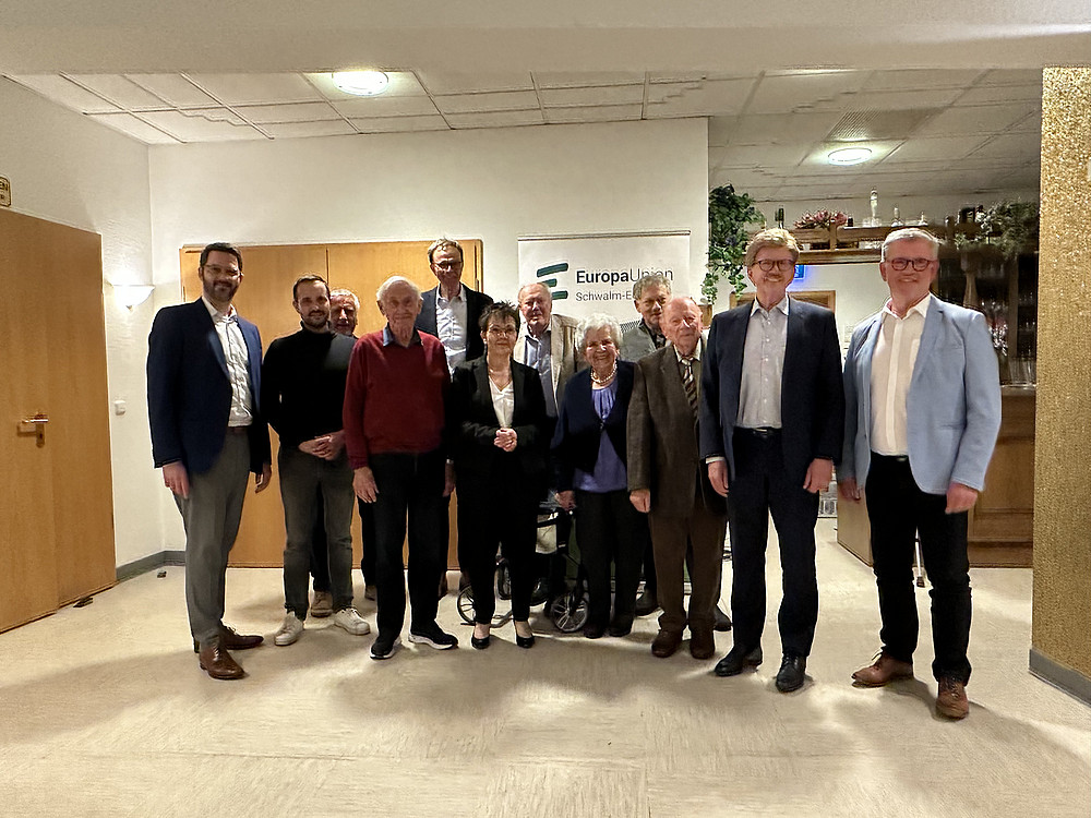 Hochaktuell waren die Beiträge bei der Jahreshauptversammlung der überparteilich tätigen EUROPA-UNION Schwalm-Eder e.V. im Gasthaus ADLER in Niedergrenzebach. Vereinsvorsitzender Heinrich Vesper konnte den neuen Abgeordneten im Bundestag, Dr. Philipp Rottwilm (Neuental), begrüßen, der sogleich die persönliche Mitgliedschaft beantragte und die künftige Unterstützung zusagte. Erster Stadtrat Lothar Ditter (Schwalmstadt) und Bürgermeister Luca Fritsch (Willingshausen) brachten die Verbundenheit mit ihren Kommunen zum Ausdruck.