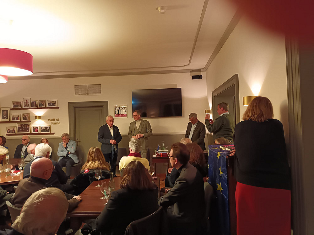 Tenor aller Redebeiträge auch aus der Teilnehmerschaft in den mehr als gefüllten Club-Räumen war, dass die guten Beziehungen zwischen der EU, Deutschland und den USA weiter bestehen und ausgebaut werden,