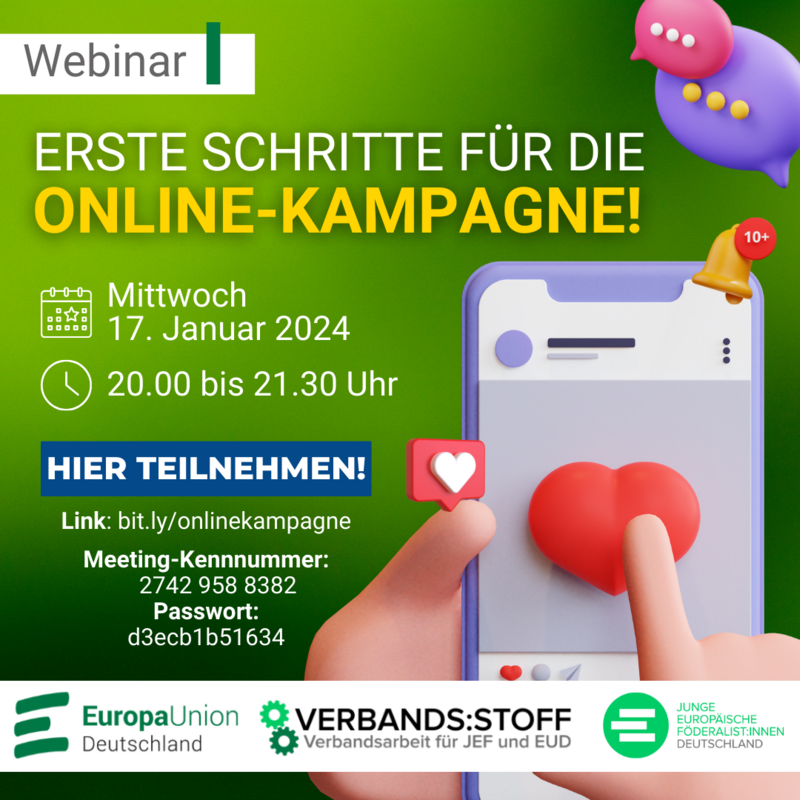 Das Webinar richtet sich vor allem an diejenigen, die für ihre Landes- und Kreisverbände Social-Media Accounts betreuen oder mit der Gestaltung von Kampagnenaktivitäten im Internet befasst sind. Auch diejenigen, die erst noch aktiv werden wollen, sind sehr herzlich willkommen!