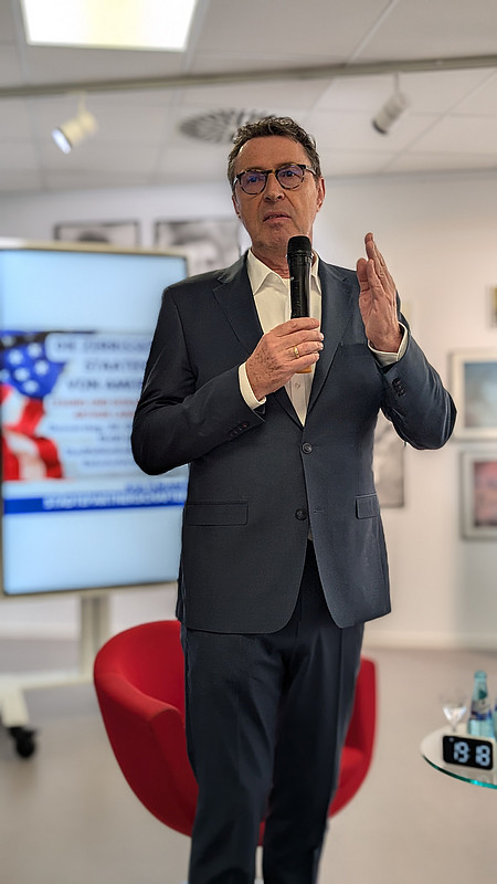 Informationen schwer sei. Unter der Moderation von Kreisvorsitzendem Sven Ringsdorf entwickelte sich eine angeregte Diskussion zum Buch und der deutsch-amerikanischen Zusammenarbeit.