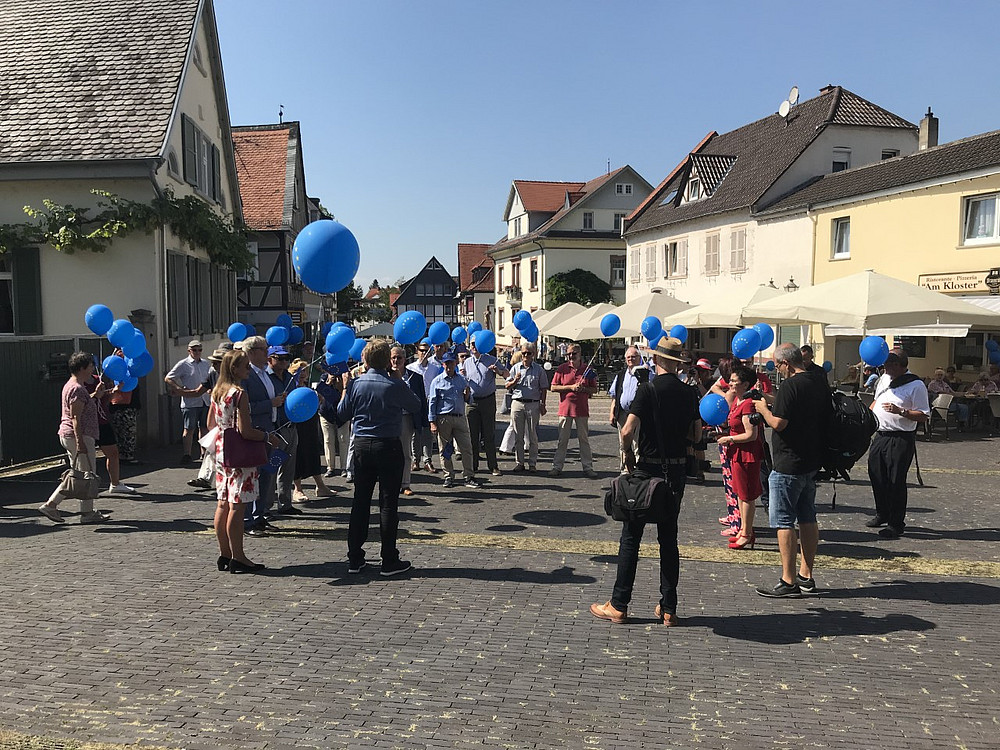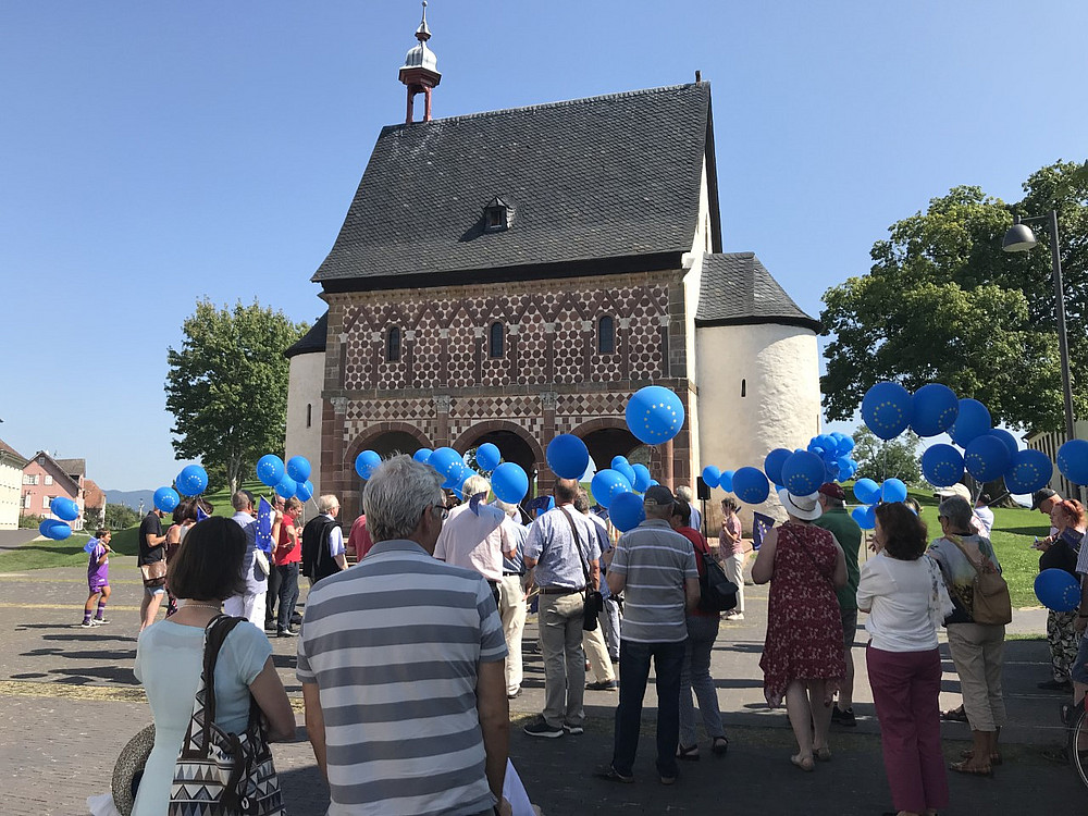 Auf Einladung des Kreisverbandes Bergstraße fand ab 14 Uhr eine proeuropäische Kundgebung vor der bedeutenden Königshalle statt, bei der sich Landrat Engelhardt am „open micro“ ebenso zu Europa positionierte wie anwesende Bürger und Europa-Freunde, ehe hunderte Europaballons in den Himmel aufstiegen.